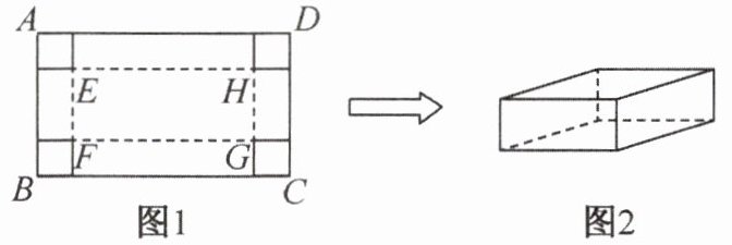 13. 在一张足够大的纸板上截取一个面积为 $ 3600 $ 平方厘米的矩形纸板 $ ABCD $,如图 $ 1 $,再在矩形纸板的四个角上切去边长相等的小正方形,再把它的边沿虚线折起,做成一个无盖的长方体纸盒,底面为矩形 $ EFGH $,如图 $ 2 $,设小正方形的边长为 $ x $ 厘米.