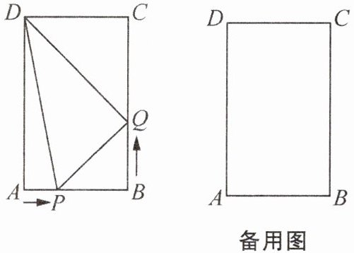(2)运动过程中,当 A、P、Q、D 四点恰好在同一个圆上时,求 t 的值。
