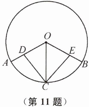 11. 如图,在 $ \odot O $ 中,$ D $,$ E $ 分别为半径 $ OA $,$ OB $ 上的点,且 $ AD = BE $.点 $ C $ 为弧 $ AB $ 上一点,连接 $ CD $,$ CE $,$ CO $,$ \angle AOC = \angle BOC $.求证:$ CD = CE $.