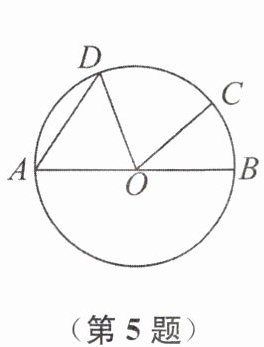 5. (2024·康县一模)如图,$AB$ 是 $\odot O$ 的直径,$\overset{\frown}{AD} = \overset{\frown}{CD}$,$\angle COB = 40^{\circ}$,则 $\angle A$ 的度数是
