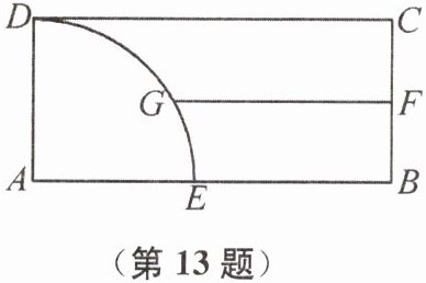 13. 如图,在长方形 $ABCD$ 中,以 $A$ 为圆心,$AD$ 长为半径画弧,交 $AB$ 于 $E$ 点。取 $BC$ 的中点为 $F$,过 $F$ 作一直线与 $AB$ 平行,且交 $\overset{\frown}{DE}$ 于 $G$ 点,则 $\angle AGF =$(