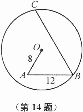 14. 如图所示,在$\odot O$内有折线$OABC$,其中$OA=8$,$AB=12$,$\angle A=\angle B=60^{\circ}$,则$BC$的长为(
