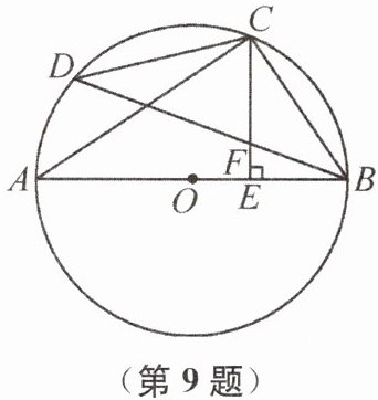 9. 如图,AB 是⊙O 的直径,C 是⌢{BD}的中点,CE⊥AB 于点 E,BD 交 CE 于点 F.