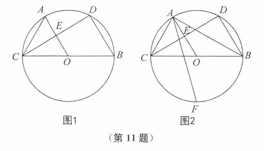 11. (2025·南通模拟)如图 1,BC 是⊙O 的直径,点 A、D 在⊙O 上,连接 BD、CD,DB//OA,BC = 10,AC = 2√{5}.