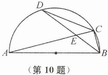 10. 如图,半圆 O 的直径 AB = 7,两弦 AC,BD 相交于点 E,∠DBC = 30°,且 BD = 5,则 DE =