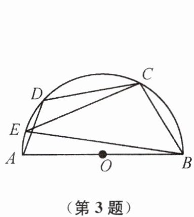 3. 如图,点 $C$,$D$ 在以 $AB$ 为直径的半圆上,且 $\angle ADC = 120°$,点 $E$ 是 $\overset{\frown}{AD}$ 上任意一点,连接 $BE$,$CE$,则 $\angle BEC$ 的度数为 (