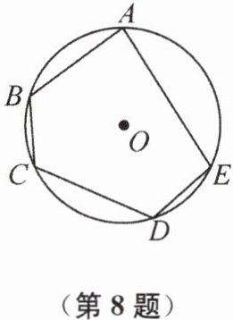 8. 如图,点 $A$、$B$、$C$、$D$、$E$ 都是 $\odot O$ 上的点,$\overset{\frown}{AC} = \overset{\frown}{AE}$,$\angle D = 128°$,则 $\angle B$ 的度数为