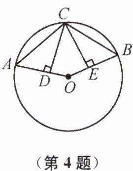 4. 如图,点 $A$,$B$,$C$ 在 $\odot O$ 上,$CD \perp OA$,$CE \perp OB$,垂足分别为 $D$,$E$,若 $\angle DCE = 40°$,则 $\angle ACB$ 的度数为 (