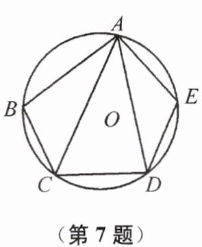 7. 如图,在 $\odot O$ 的内接五边形 $ABCDE$ 中,$\angle CAD = 35°$,则 $\angle B + \angle E =$