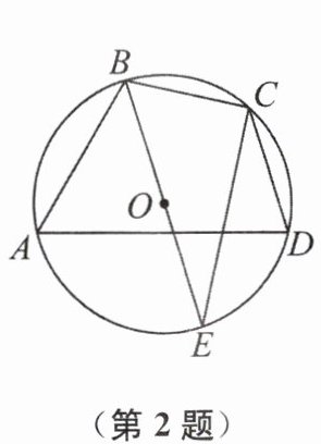 2. (2025·越秀区二模)如图,四边形 $ABCD$ 是 $\odot O$ 内接四边形,$BE$ 是 $\odot O$ 的直径,连接 $CE$,若 $\angle BCD = 2\angle BAD$,则 $\angle ECD$ 的度数是 (