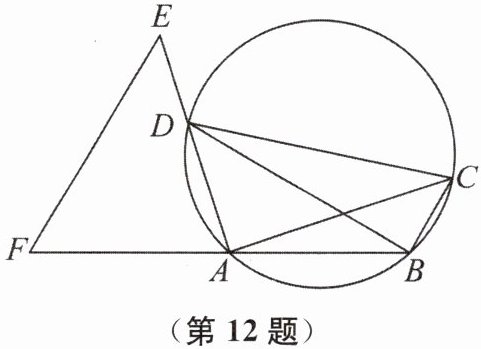 12. (2024·浙江)如图,在圆内接四边形 $ABCD$ 中,$AD < AC$,$\angle ADC < \angle BAD$,延长 $AD$ 至点 $E$,使 $AE = AC$,延长 $BA$ 至点 $F$,连结 $EF$,使 $\angle AFE = \angle ADC$。