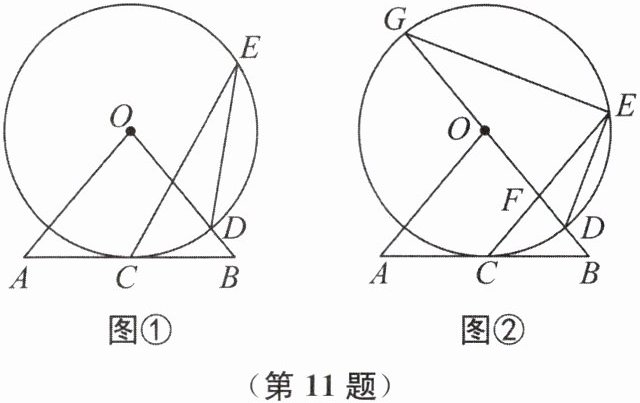 (2) 如图②,当EC//OA时,EC与OB相交于点F,延长BO与⊙O相交于点G,若⊙O的半径为3,求ED和EG的长.