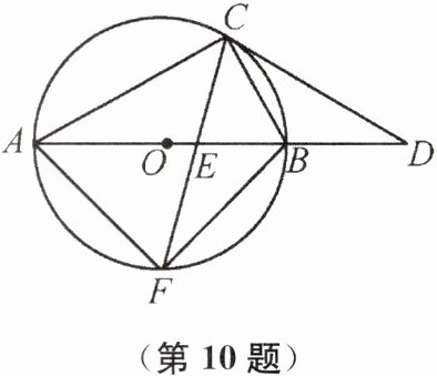 10. 如图,△ABC内接于⊙O,且AB为⊙O的直径,过点C作⊙O的切线CD交AB的延长线于点D,点E在直径AB上,且DE=DC,连接CE并延长交⊙O于点F,连接AF,BF,试判断AF与BF的数量关系,并说明理由.