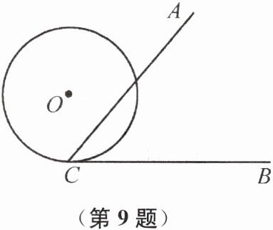 9. 如图,∠ACB=60°,半径为1 cm的⊙O切BC于点C,若将⊙O在CB上向右滚动,则当滚动到⊙O与CA也相切时,圆心O移动的水平距离是
