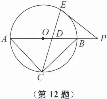 12. (2025·志丹县二模)如图,等腰三角形ABC内接于⊙O,AB是⊙O的直径,D是线段OB上异于O,B的一点.连接CD并延长交⊙O于点E,点P在AB的延长线上,且PE是⊙O的切线.