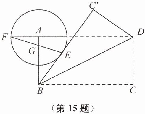 15. (2023·镇江)如图,将矩形ABCD(AD>AB)沿对角线BD翻折,C的对应点为点C',以矩形ABCD的顶点A为圆心,r为半径画圆,⊙A与BC'相切于点E,延长DA交⊙A于点F,连接EF交AB于点G.