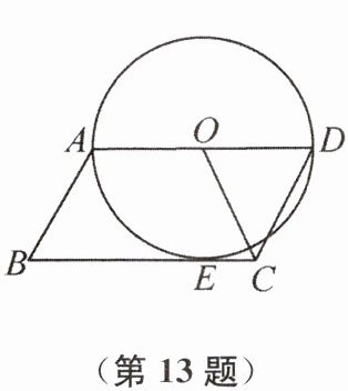 13. 如图,在▱ABCD中,AD=12,以AD为直径的⊙O与BC相切于点E,连接OC.若OC=AB,则▱ABCD的周长为
