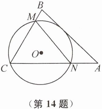 14. (2023·秀洲区二模)如图,⊙O经过△ABC的顶点C,与边CB,CA分别交于点M,N,与AB边相切.若∠BCA=60°,∠A=45°,AC=4,则线段MN长度的最小值是(