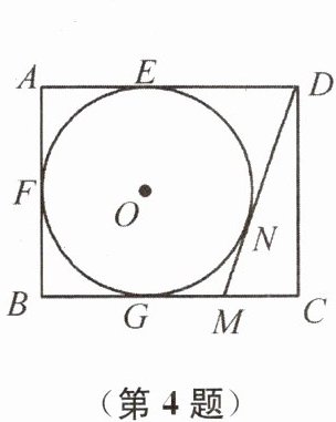 4. 如图, 在矩形 ABCD 中,AB = 4,AD = 5,AD,AB,BC 分别与⊙O 相切于 E,F,G 三点, 过点 D 作⊙O 的切线交 BC 于点 M, 切点为 N, 则 DM 的长为 (