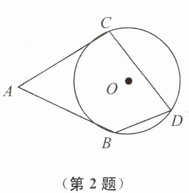 2. (2023·浙江)如图, 点 A 是⊙O 外一点,AB,AC 分别与⊙O 相切于点 B,C, 点 D 在⌢{BDC} 上. 已知∠A = 50°, 则∠D 的度数是 (