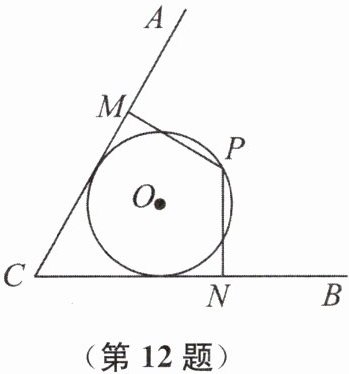 12. (2025·扬州二模)如图, ∠ACB = 60°, ⊙O 的半径为 3 且与∠ACB 两边都相切, 点 P 为圆上一动点, 分别作 PM ⊥ CA,PN ⊥ CB, 令 s = PM + 2PN, 则 s 的最大值与最小值的差为