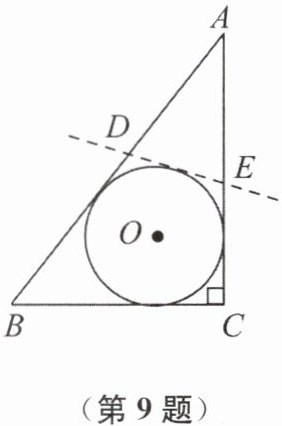 9. (2024秋·邯郸期末)如图,在一张Rt△ABC纸片中,∠ACB=90°,BC=3,AC=4,⊙O是它的内切圆.小明用剪刀沿着⊙O的切线DE剪下一块三角形ADE,则△ADE的周长为
