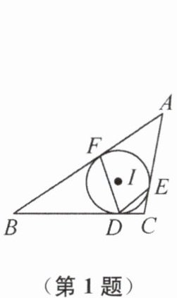 1. (2023·广州)如图,△ABC的内切圆⊙I与BC,CA,AB分别相切于点D,E,F,若⊙I的半径为r,∠A=α,则(BF+CE-BC)的值和∠FDE的大小分别为 (