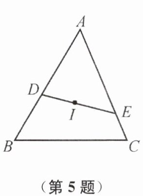 5. 如图,I为△ABC的内心,有一直线通过I点且分别与AB,AC相交于点D点、E点.若AD=DE=5,AE=6,则I点到BC的距离为 (