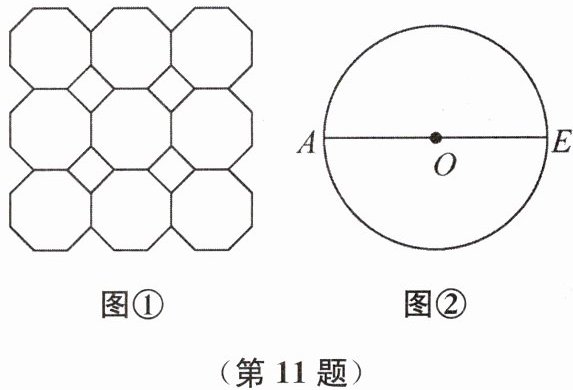 11. 图①是我们常见的地砖上的图案,其中包含了一种特殊的平面图形—正八边形.