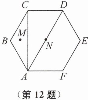 12. (2025·海港区一模)如图,正六边形 ABCDEF 的边长为 $(\sqrt{3} + 1)$,点 M 是 $\triangle ABC$ 的内心,点 N 是 $\triangle ACD$ 的外心,则 MN 的长度为(