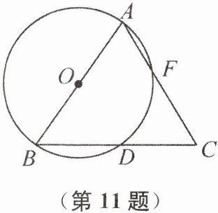 11. (2023 秋·温岭市期末)如图,AB 是⊙O 的直径,BD 是⊙O 的弦,延长 BD 到点 C,使 DC = BD,连接 AC 交⊙O 于点 F。