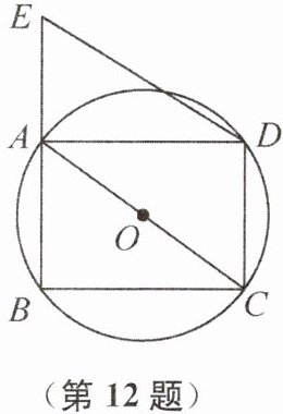 12. (2023·福建模拟)如图,□ABCD 内接于⊙O,连接 AC,将 AC 沿 CD 方向平移得到 DE。