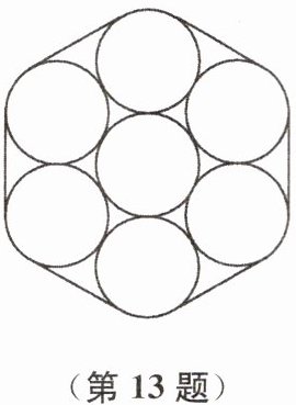 13. 如图,7 根圆柱形木棒的横截面圆的半径均为 1,则捆扎这 7 根木棒一周的绳子长度为