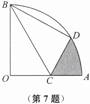 7. (2025·信阳模拟)如图,扇形 $AOB$ 中,$\angle AOB = 90^{\circ}$,点 $C$ 为 $OA$ 上一个动点,连接 $BC$,以 $BC$ 为对称轴折叠$\triangle OBC$得到$\triangle DBC$,点 $O$ 的对应点为点 $D$,当点 $D$ 落在弧 $AB$ 上时,若 $OA = 2$,则阴影部分的面积为