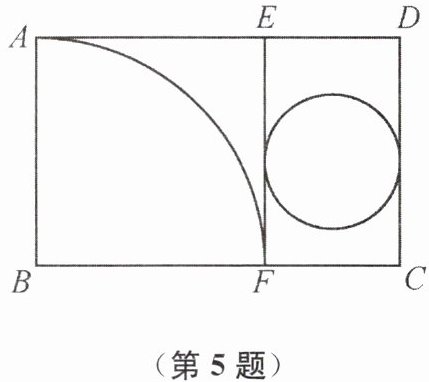 5. 如图所示,矩形纸片$ABCD$中,$AD = 6cm$,把它分割成正方形纸片$ABFE$和矩形纸片$EFCD$后,分别裁出扇形$ABF$和半径最大的圆,恰好能作为一个圆锥的侧面和底面,则$AB$的长为(