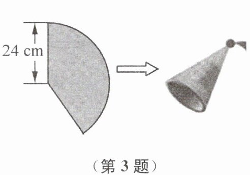 3. 小刚用一张半径为24cm的扇形纸板做一个如图所示的圆锥形小丑帽子侧面(接缝忽略不计),如果做成的圆锥形小丑帽子的底面半径为10cm,那么这张扇形纸板的面积是(