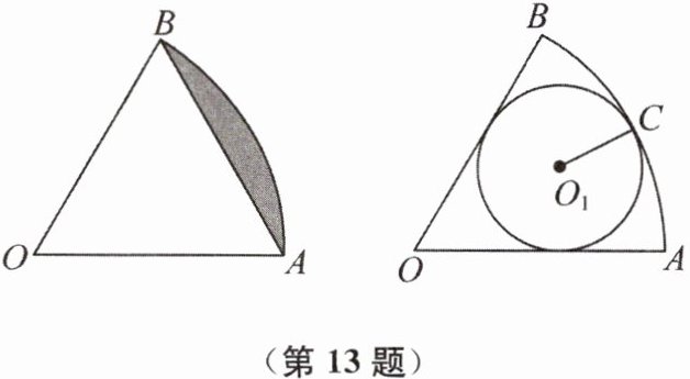 13. 如图,已知扇形 $ AOB $ 中,$ \angle AOB = 60^{\circ} $,半径 $ R = 3 $.