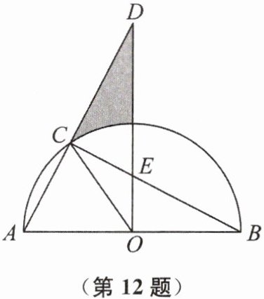12. (2025·宜兴市二模)如图,在半 $ \odot O $ 中,直径 $ AB $ 的长为 $ 6 $,点 $ C $ 是半圆上一点,过圆心 $ O $ 作 $ AB $ 的垂线交线段 $ AC $ 的延长线于点 $ D $,交弦 $ BC $ 于点 $ E $.