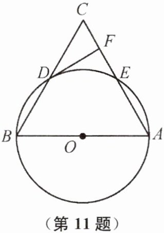 11. 如图,在 $ \triangle ABC $ 中,以 $ AB $ 为直径的 $ \odot O $ 分别与 $ BC $,$ AC $ 相交于点 $ D $,$ E $,$ BD = CD $,过点 $ D $ 作 $ \odot O $ 的切线交边 $ AC $ 于点 $ F $.