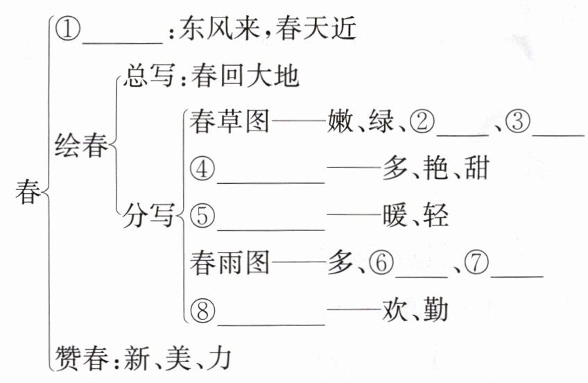 │ │ ├─ 春草图——嫩、绿、②______、③______