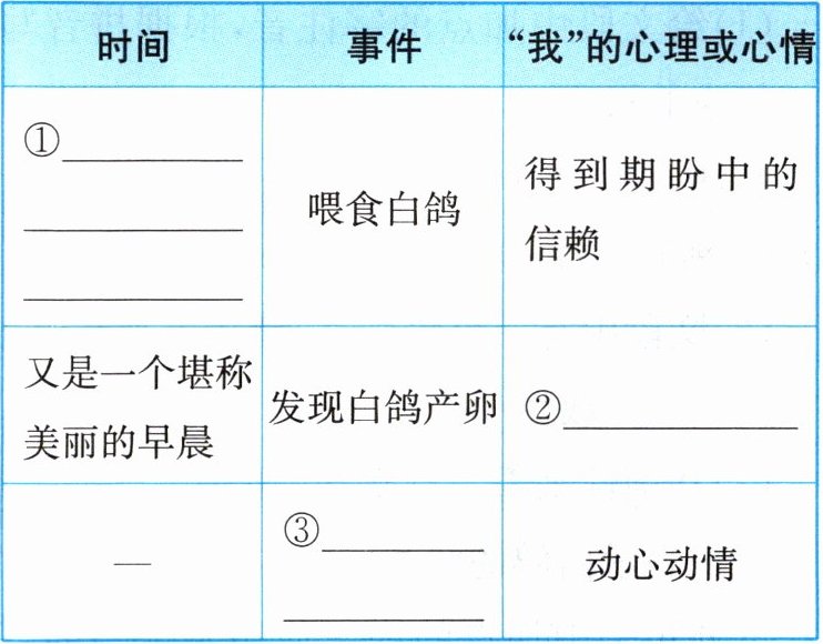 |又是一个堪称美丽的早晨|发现白鸽产卵|②______|