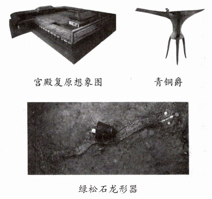 1. 某同学去河南省洛阳市旅游时,参观了一座博物馆,看到了下列遗址复原图和文物,据此判断他参观的博物馆是( )。
