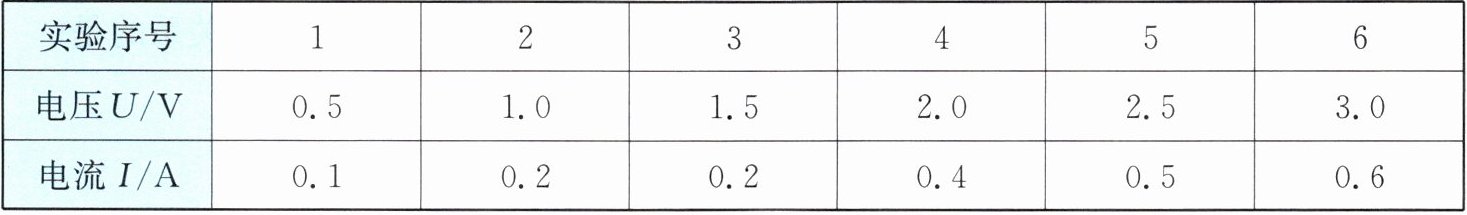 |电压U/V|0.5|1.0|1.5|2.0|2.5|3.0|