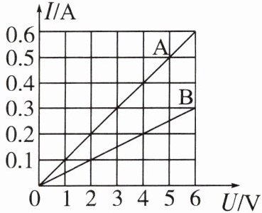 2. (多选)右图是阻值分别为$R_A和R_B$的定值电阻A和B的$I - U$图像。由图像判断下列说法正确的是(