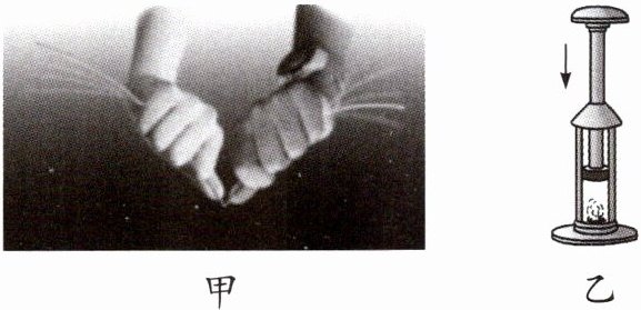 (1)如图乙所示,先在一个配有活塞的厚壁玻璃筒里放一小团硝化棉,然后迅速压下活塞,观察到硝化棉燃烧了起来,这是通过