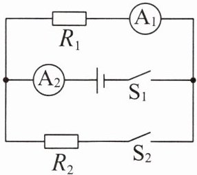 (2)再闭合开关$ S_2,$电流表$ A_2 $的示数变化了 0.1 A,求定值电阻的阻值$ R_2。$