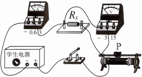 (1)的分析,得到电压表的示数为 1.9 V,电流表的示数为 0.16 A,根据欧姆定律变形公式,R_x = $\frac{U}{I}$ = $\frac{1.9 V}{0.16 A}$ = 11.9 Ω。