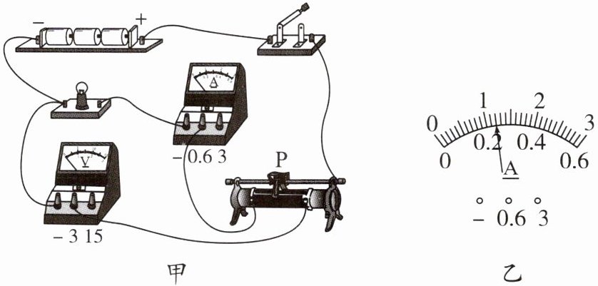 (3)纠正错误后继续进行实验,移动滑动变阻器的滑片,电压表的示数为$2.5V$时,电流表的示数如图乙所示,示数为______ $A$,小灯泡的额定功率为______ $W$。