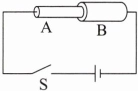 4. 如图所示,将两段材料与长度均相同的合金丝$ A 和 B $接入电路中,两段合金丝的电阻$ R_{A} $