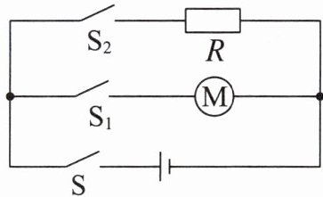 (1)由电路图知,闭合开关S、$S_{1}$,电路为电动机的简单电路,此时电动机正常工作,电动机两端的电压等于电动机的额定电压且等于电源电压,所以电源电压$U=U_{额}=12V$。